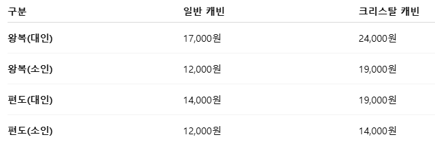 - 크리스탈 캐빈은 일반보다 5,000~7,000원 비쌈