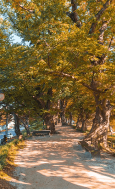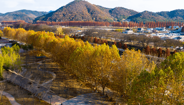 쭉쭉 뻗은 나무들이 도로 양옆으로 늘어선 이 길은 담양의 대표 인생샷 명소입니다. 사계절 내내 분위기가 달라지며 특히 가을 단풍, 겨울 설경이 인상적이에요. 자전거 도로도 잘 마련돼 있어 커플이나 가족 단위로 산책하기 좋습니다.