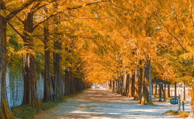 쭉쭉 뻗은 나무들이 도로 양옆으로 늘어선 이 길은 담양의 대표 인생샷 명소입니다. 사계절 내내 분위기가 달라지며 특히 가을 단풍, 겨울 설경이 인상적이에요. 자전거 도로도 잘 마련돼 있어 커플이나 가족 단위로 산책하기 좋습니다.