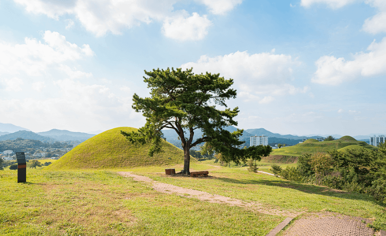 가야시대 무덤군으로, 대규모 고분들이 능선 따라 펼쳐진 유적지입니다. 고분 위를 직접 걸을 수 있는 산책로가 조성돼 있어 유적을 보며 트래킹할 수 있어요. 역사와 자연을 동시에 체험할 수 있는 함안만의 특색 있는 장소입니다.