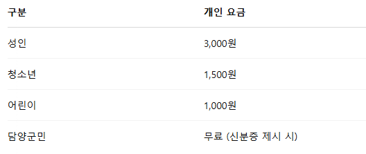 - 입장료: 성인 2,000원, 청소년 1,000원