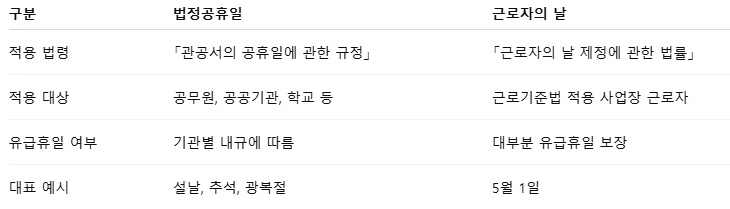 ▷ 법정공휴일 vs 근로자의 날